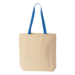 Liberty Bags 10.0 Ounce Marianne Cotton Canvas Tote Bag. 10 oz 100% cotton canvas. Gusset bottom, contrasting polypropylene 22 inch handles with a 10 drop. Non-branded label/tag. 15 x 14 x 3.